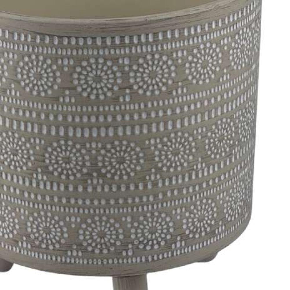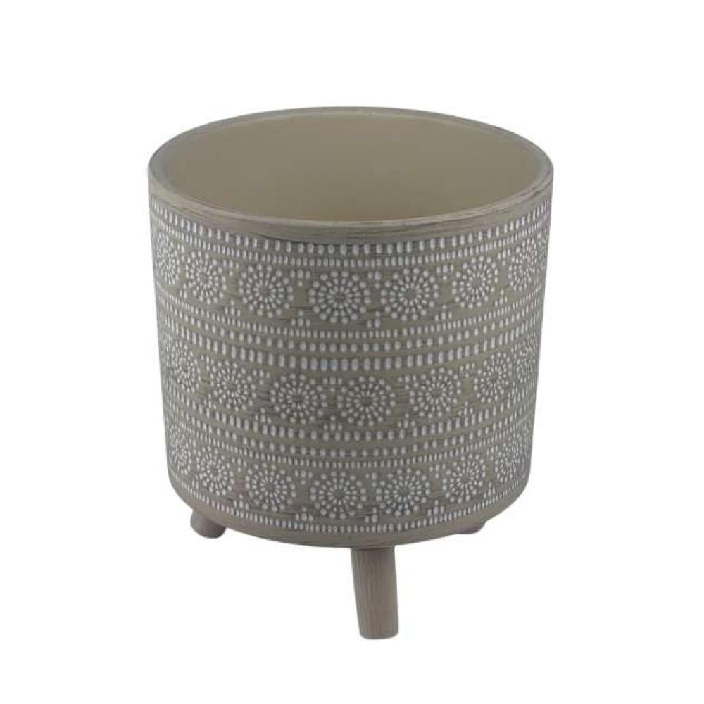 أصيص أنيق مصنوع من السيراميك عالي الجودة بنقوش دقيقة مستوحاة من الزخارف التقليدية، يأتي مع قاعدة خشبية بثلاث أرجل تضيف لمسة من الدفء والطابع العصري. مثالي لتزيين المساحات الداخلية مثل غرف المعيشة أو المكاتب، ويضفي لمسة فنية جميلة على أي طاولة أو زاوية.