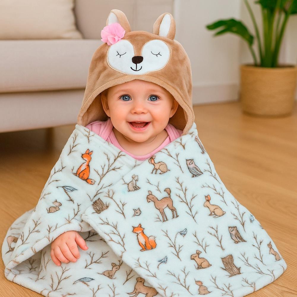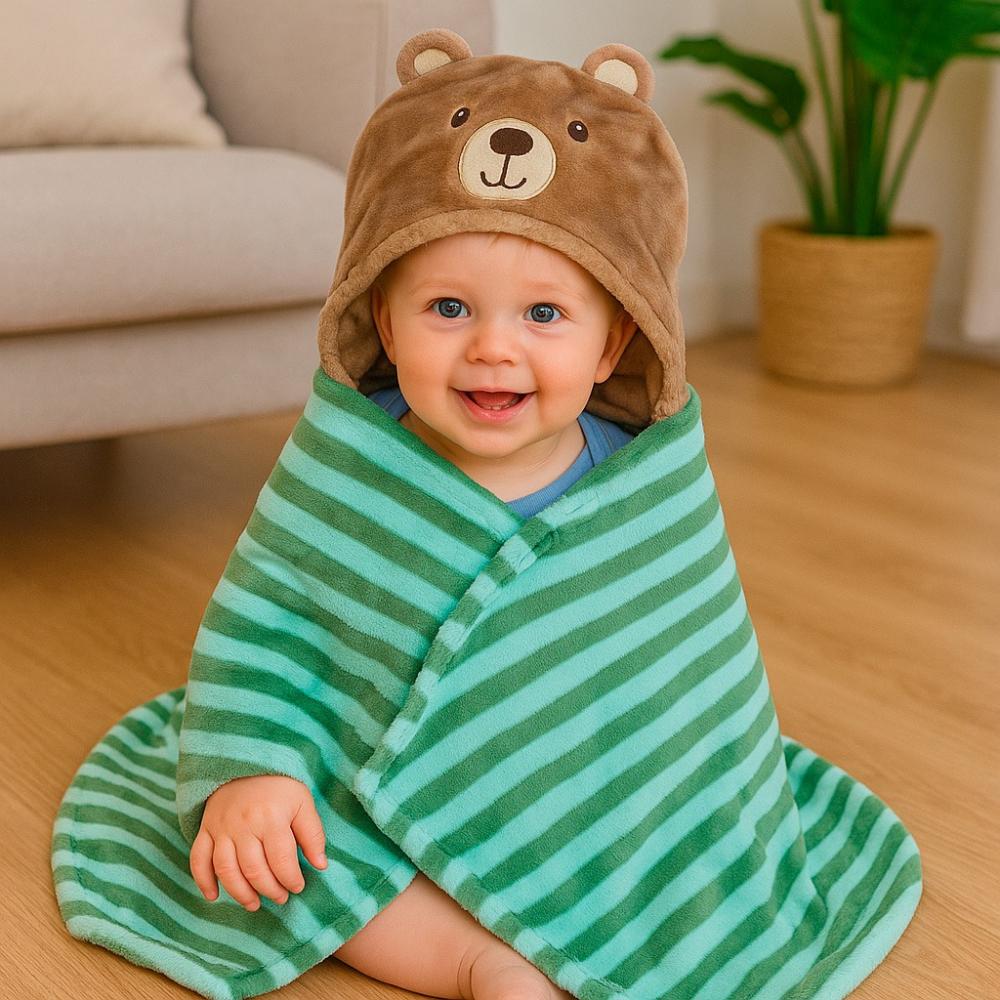 بطانية ناعمة مزودة بغطاء للرأس، مثالية لتدفئة الطفل بعد الاستحمام أو أثناء النوم. مصنوعة من خامات فاخرة وآمنة على بشرة الطفل، وتوفر دفئًا وراحة تامة مع تصميم لطيف يناسب حديثي الولادة. خيار عملي وأنيق للمنزل أو أثناء التنقل.