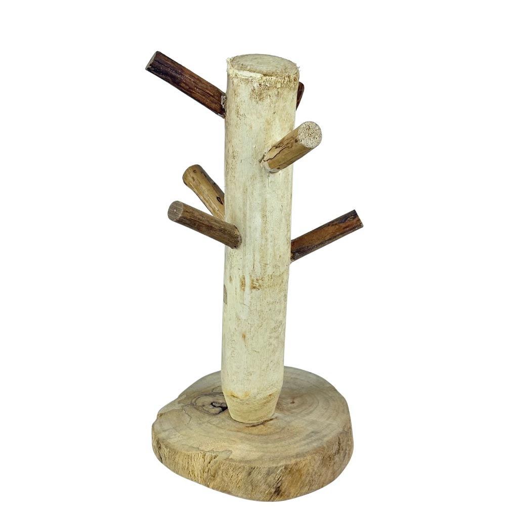 حامل أكواب مصنوع يدويًا من الخشب الطبيعي بتصميم مستوحى من شكل جذع الشجرة، يحتوي على عدة أذرع لتعليق الأكواب بشكل عملي ومنظم. مثالي لتزيين طاولة المطبخ أو زاوية القهوة، ويضفي لمسة ريفية دافئة على المكان مع الحفاظ على الأكواب في متناول اليد.