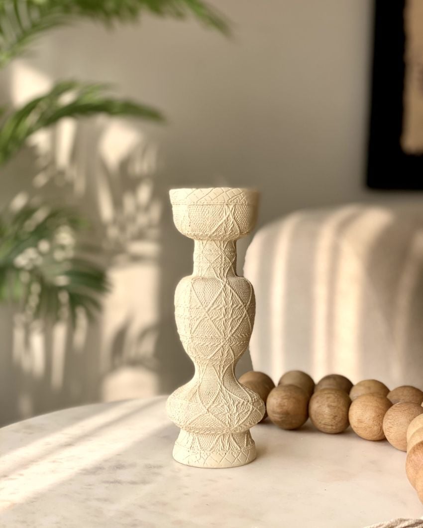 حامل شموع أنيق يجمع بين الوظيفة والجمال، مصنوع من مواد عالية الجودة مثل المعدن، السيراميك أو الزجاج. يتميز بتصميم فني راقٍ يضفي أجواء دافئة ورومانسية على المساحة، سواء في غرف المعيشة، غرف النوم أو طاولات الطعام. متوفر بأشكال وأحجام متعددة تناسب مختلف أنماط الديكور، ويُعد قطعة مثالية للاستخدام اليومي أو المناسبات الخاصة، كما يصلح كهدية أنيقة لمحبي الأجواء الهادئة والديكور الفاخر.