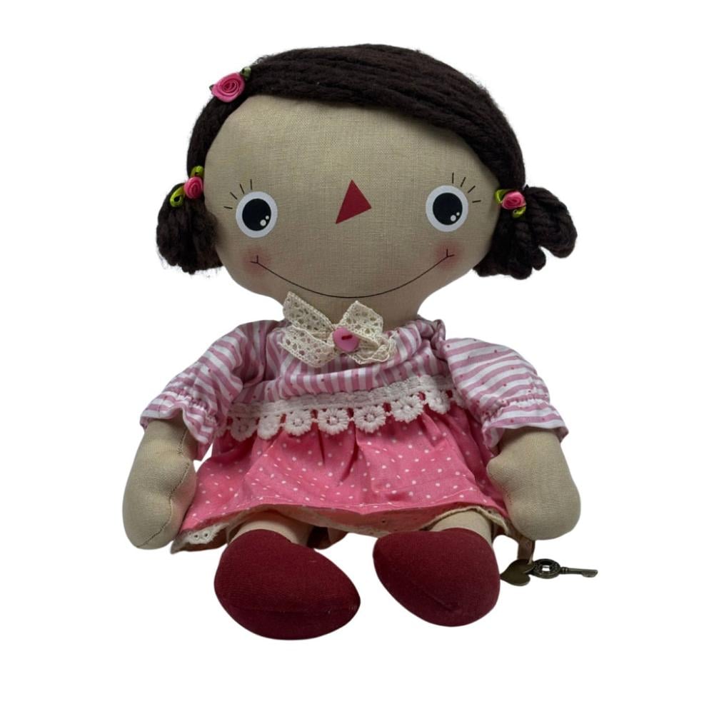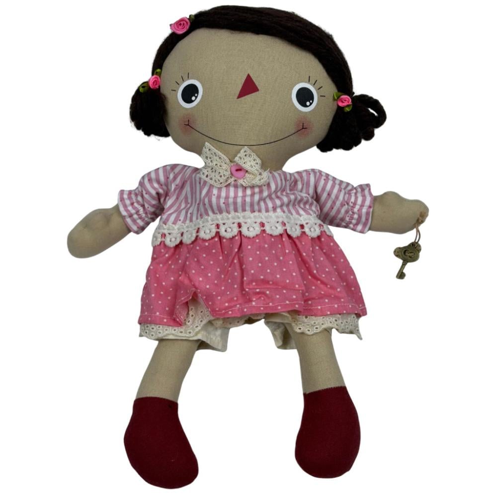 دمية قماشية بفستان وردي ومفتاح ذهبي