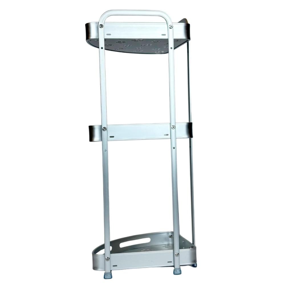 رف زواية أنيق مصنوع من المعدن المقاوم للصدأ، بتصميم ثلاثي الطوابق يوفر لك مساحة إضافية لتخزين أدوات الحمام أو المطبخ. يتميز بسطح مزخرف بفتحات على شكل أزهار لتصريف المياه بسهولة ومنع تراكمها. مثالي لترتيب الشامبو، الصابون، أو أدوات المطبخ بشكل منظم وعملي مع لمسة جمالية عصرية.