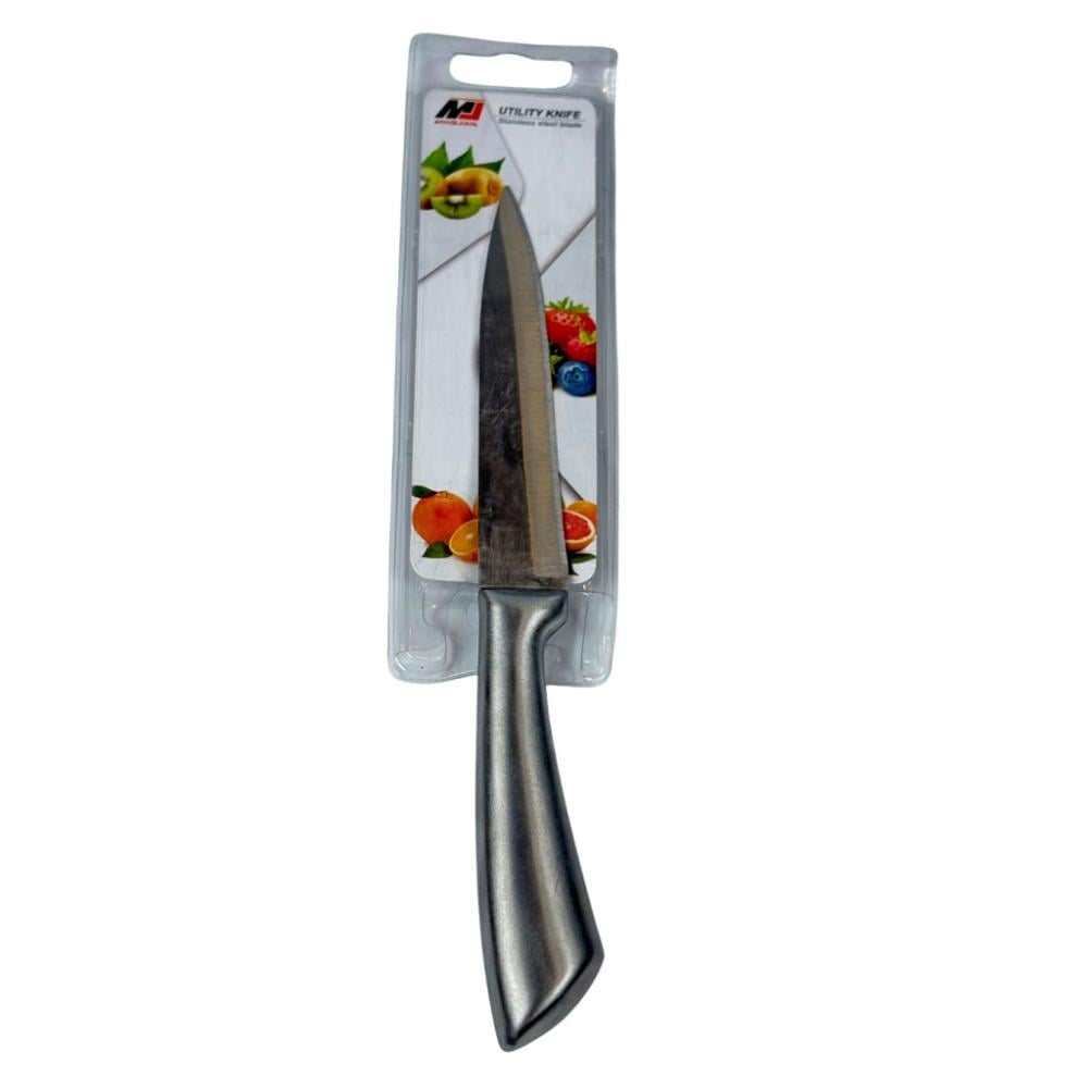 سكين عملي مصنوع من الفولاذ المقاوم للصدأ مع مقبض مريح لتوفير ثبات أثناء الاستخدام. يتميز بشفرة حادة مثالية لتقطيع الخضار والفواكه واللحوم بسهولة ودقة. تصميمه الأنيق والمتين يجعله إضافة أساسية لكل مطبخ، مناسب للاستخدام اليومي وللمهام المتنوعة في تحضير الطعام.