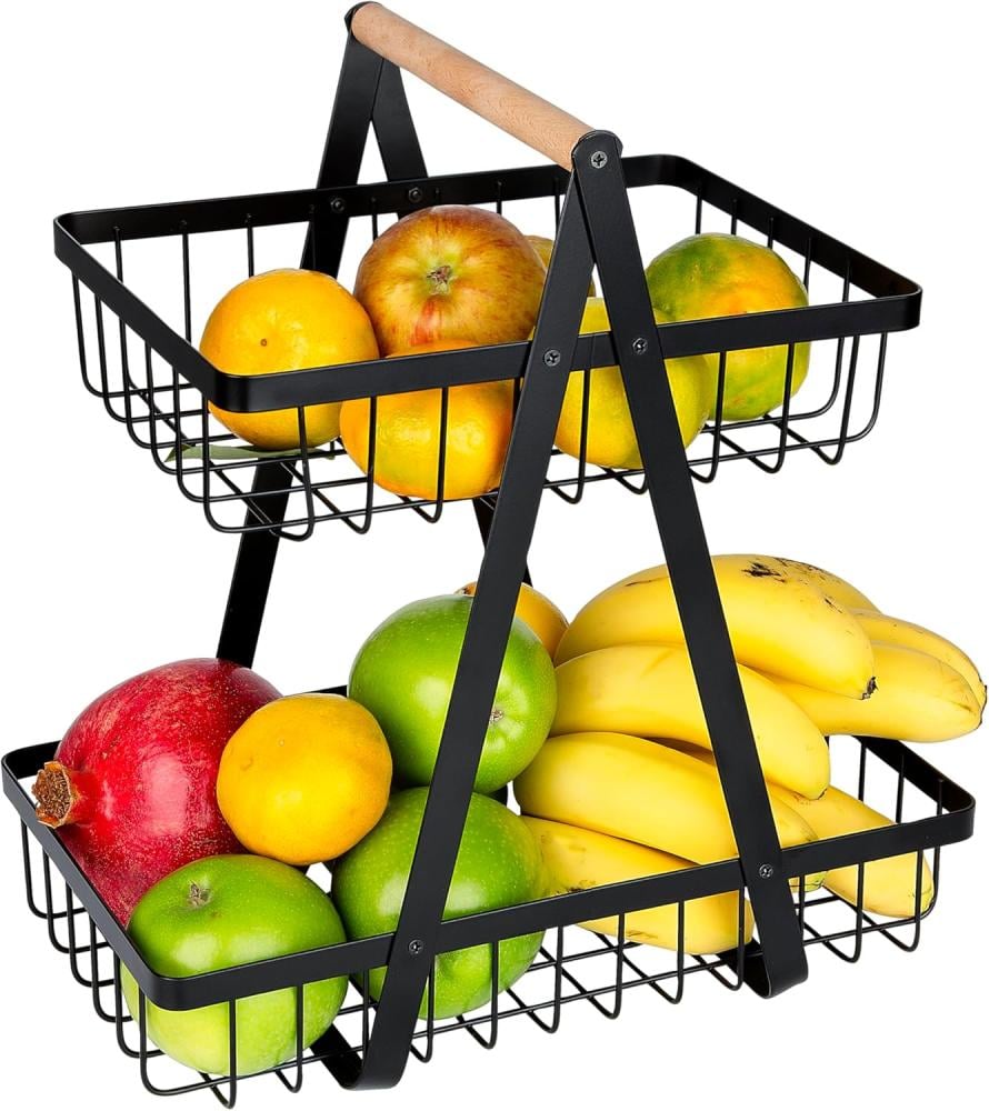سلة فواكه بطبقتين من الستانلس ستيل الأسود، تجمع بين المتانة والتصميم العصري الأنيق. توفر تنظيمًا عمليًا ومساحة إضافية لتخزين الفواكه والخضروات أو أدوات المنزل، مما يعزز ترتيب وجمالية مطبخك أو أي مكان في المنزل.