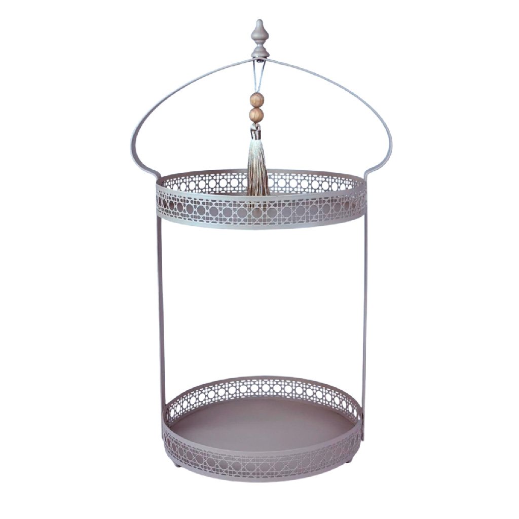 صينية تقديم معدنية بدورين بتصميم زخرفي أنيق
