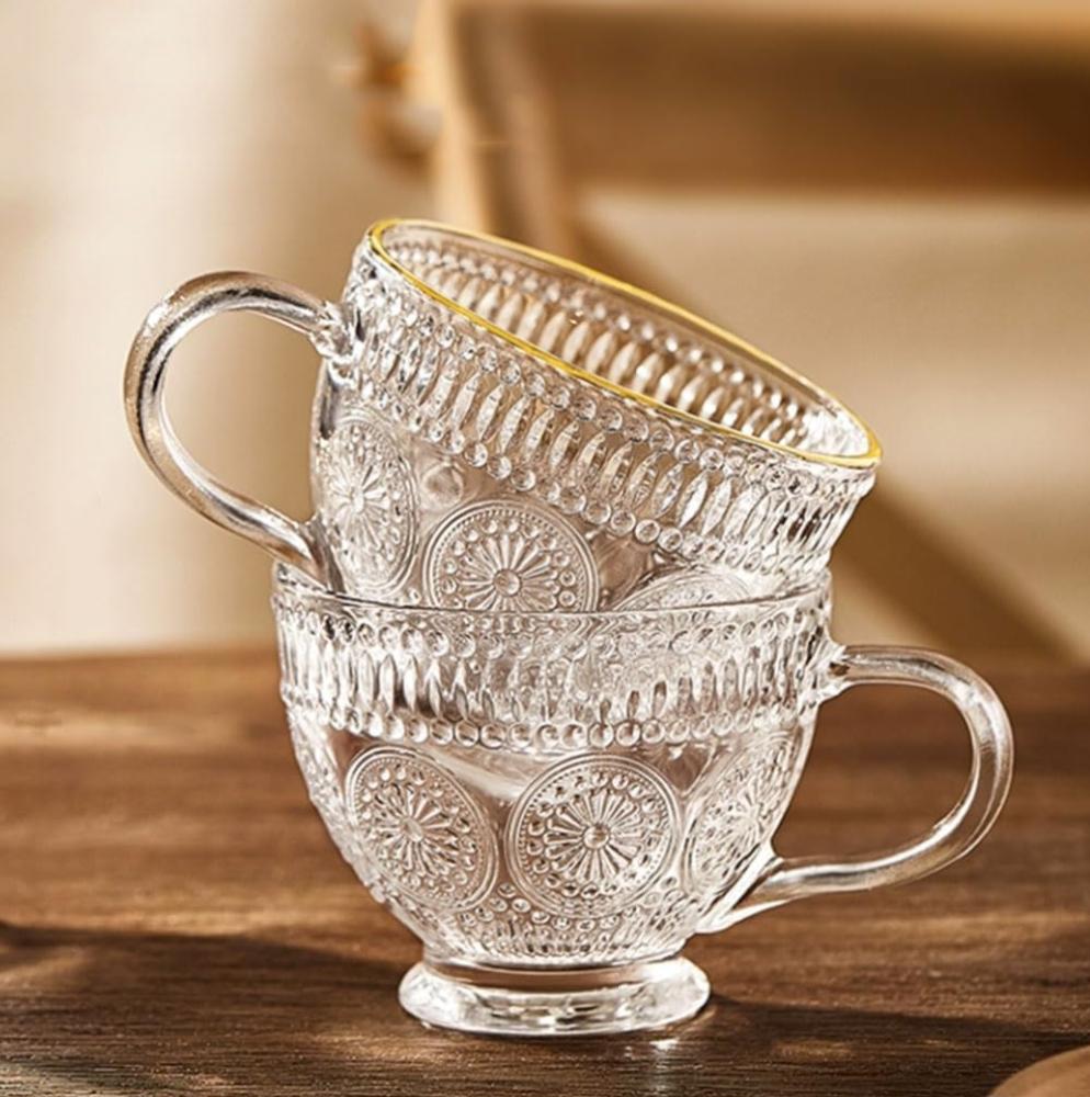 استمتع بتجربة شرب الشاي أو القهوة بأناقة لا مثيل لها مع هذا الطقم الرائع المكون من قطعتين من الأكواب الزجاجية الفاخرة. يتميز كل كوب بتصميم فريد ونقوش دقيقة تضفي عليه لمسة جمالية راقية، بالإضافة إلى حافة ذهبية تزيد من فخامته. هذه الأكواب مثالية للاستمتاع بمشروباتك الساخنة المفضلة في أي وقت، كما أنها تشكل هدية مثالية للأحباب والأصدقاء. مصنوعة من زجاج عالي الجودة يضمن المتانة والوضوح.