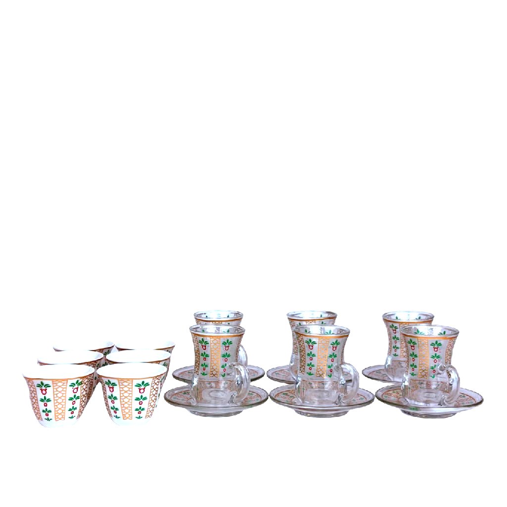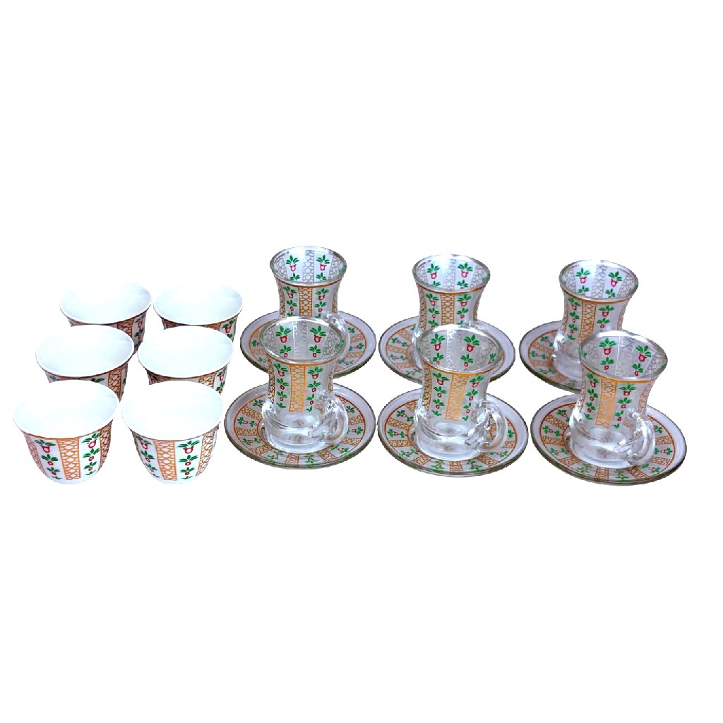 طقم بيالات تراثي فاخر بتصميم أنيق مستوحى من التراث العربي الكلاسيكي، يجمع بين الأصالة والفخامة في تفاصيله الدقيقة. مصنوع من مواد عالية الجودة ويتميز بزخارف جميلة تضيف لمسة فاخرة لطاولة الضيافة. مثالي لتقديم الشاي والقهوة في المناسبات والجلسات اليومية، ويعكس الذوق الرفيع في الضيافة العربية.