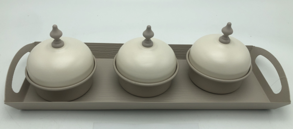 طقم تقديم فاخر بثلاث حاويات مع صينية – لون بيج هادئ