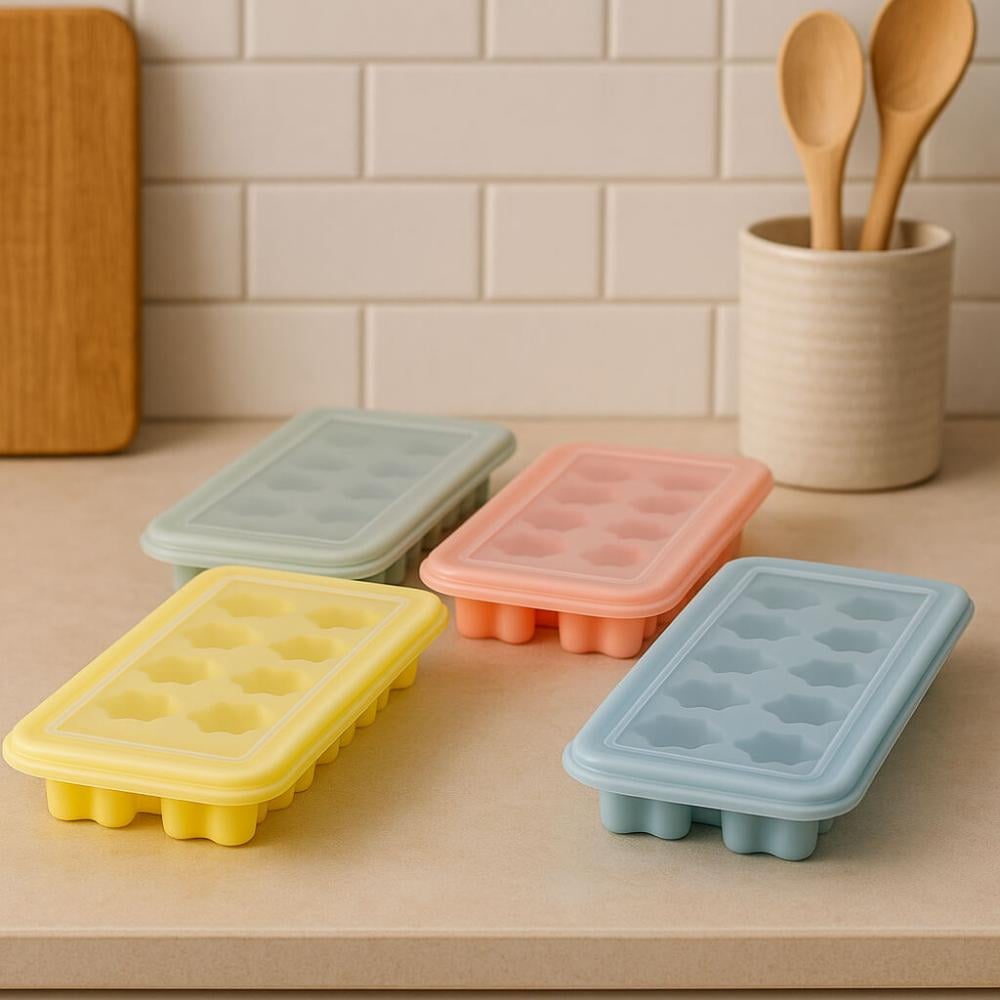 طقم قوالب ثلج سيليكون بغطاء – 4 ألوان