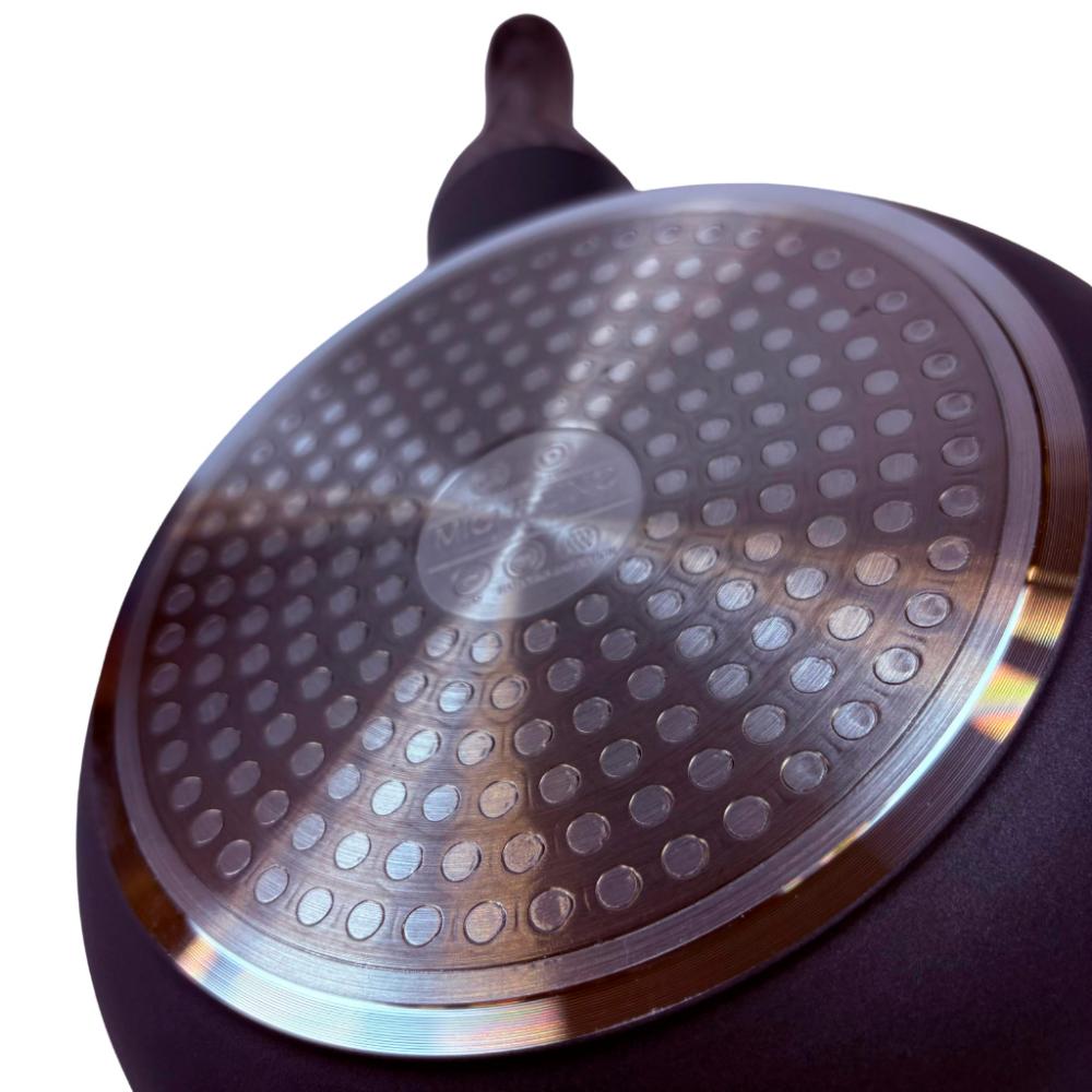يتميز بقاعدة قوية موزعة للحرارة بشكل متساوي ومقبض مريح بتصميم خشبي عصري مقاوم للحرارة.