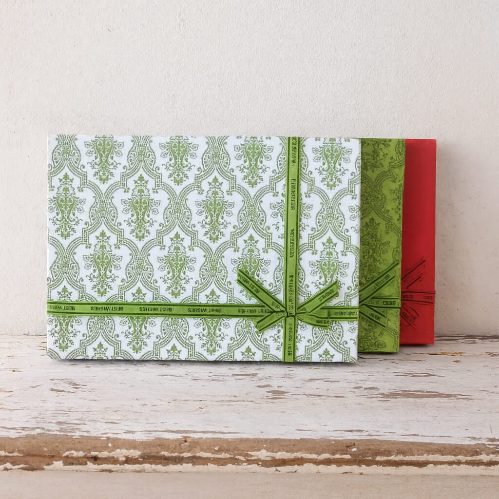 مجموعة علب هدايا فاخرة بأحجام متعددة، مصنوعة من كرتون عالي الجودة ومزينة بنقشة فخمة وشريط أنيق يحمل عبارات تهنئة. مناسبة لتغليف الهدايا في المناسبات مثل الأعياد، حفلات الزفاف، أعياد الميلاد، وغيرها.