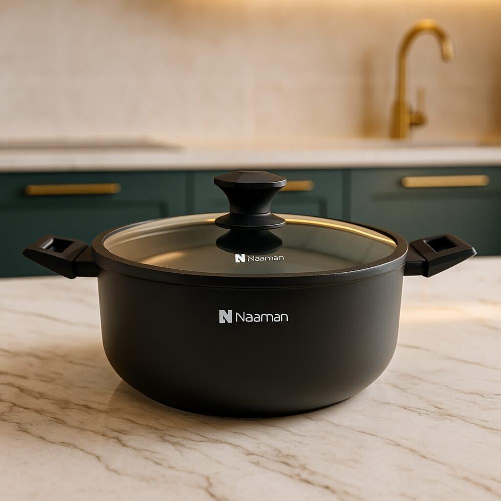 استمتع بتحضير وجباتك المفضلة باستخدام قدر الطهي من Naaman المصنوع من الألمنيوم عالي الجودة بطبقة داخلية غير لاصقة توفر طهياً صحياً وسهلاً. يتميز القدر بمقابض جانبية مريحة وآمنة، وغطاء زجاجي شفاف بفتحة تهوية تساعد على مراقبة عملية الطهي. تصميمه العصري باللون الأسود الأنيق يجعله إضافة مثالية لأي مطبخ. مناسب لجميع أنواع المواقد، وسهل التنظيف.