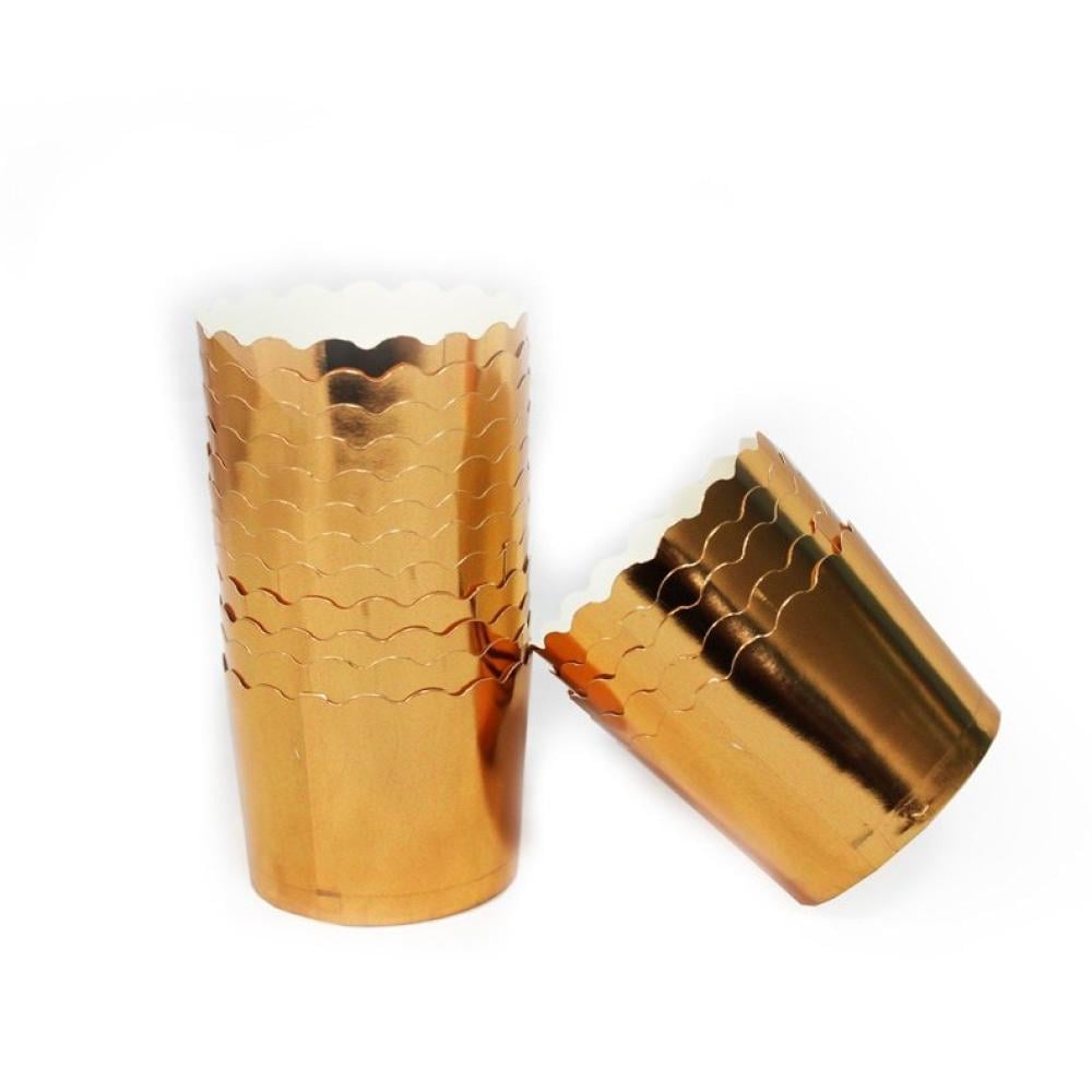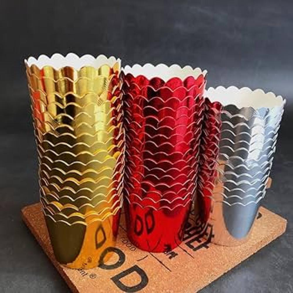 قوالب كب كيك ورقية ذهبية فاخرةأضف لمسة من البريق والأناقة إلى حلوياتك مع هذه المجموعة من قوالب الكب كيك الورقية باللون الذهبي اللامع. هذه القوالب مثالية لجعل الكب كيك والمافن يبدوان مميزين وفاخرين في المناسبات الخاصة والاحتفالات. مصنوعة من ورق عالي الجودة