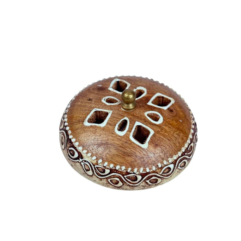 مبخرة بتصميم هندي فريد تجمع بين الجمالية والعملية، مصنوعة من الخشب الطبيعي ومزينة بنقوش محفورة بدقة تضفي عليها طابعاً تراثياً أنيقاً. تتميز بغطاء علوي بزخارف متناسقة ومقبض خشبي طويل يسهل حملها وتحريكها. مثالية لاستخدام البخور والعود في المجالس والمناسبات.