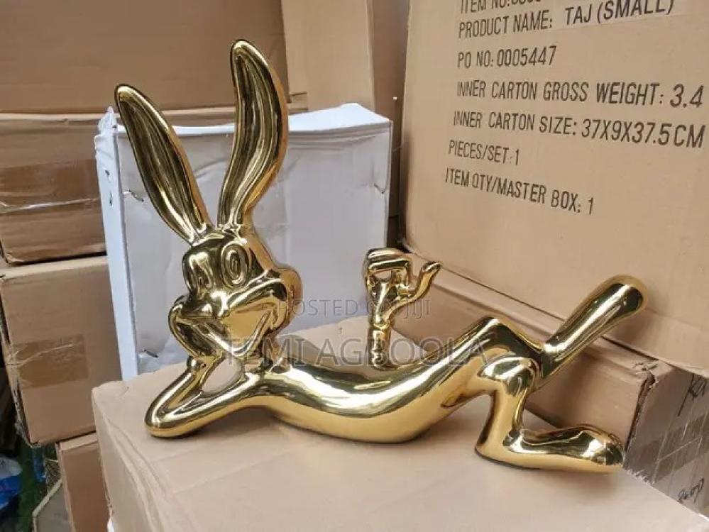 مجسم لشخصية باغز باني الشهيرة من لوني تونز، مصنوع من راتينج عالي الجودة، بطول 34 سم، مثالي لعشاق الكرتون والقطع المميزة.