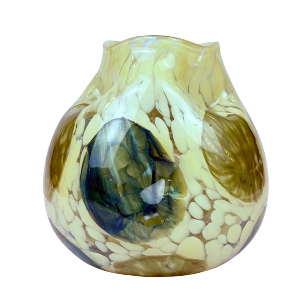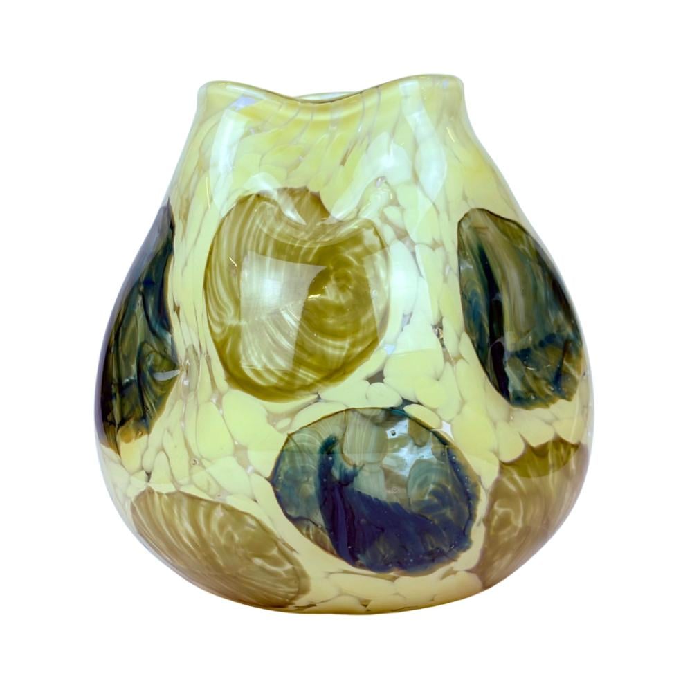 مزهرية زجاجية فنية بنقوش دائرية ملونة