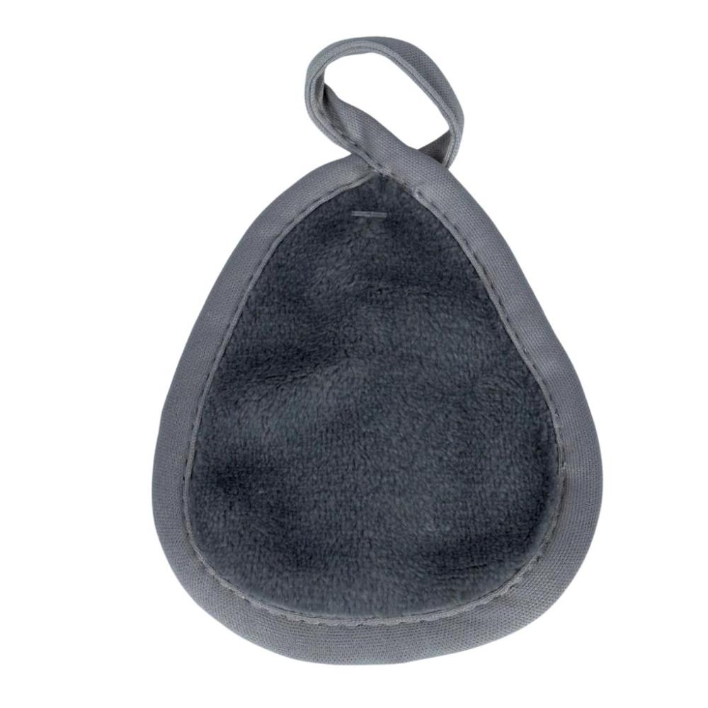 ممسحة عملية من قماش المايكروفايبر عالي الامتصاص باللون الرمادي، تصميم مدمج على شكل قطرة مع حلقة للتعليق لسهولة التخزين. مثالية لتنظيف الأسطح المختلفة مثل المطبخ، الطاولات، والزجاج، بفضل خامتها الناعمة التي لا تترك خدوشًا. خفيفة وسهلة الغسيل لإعادة الاستخدام مرات عديدة.