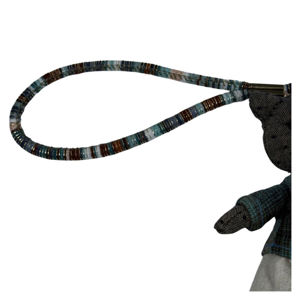 يحتوي على حلقة معدنية وحبل ملون لتعليقه على المفاتيح أو الحقائب.